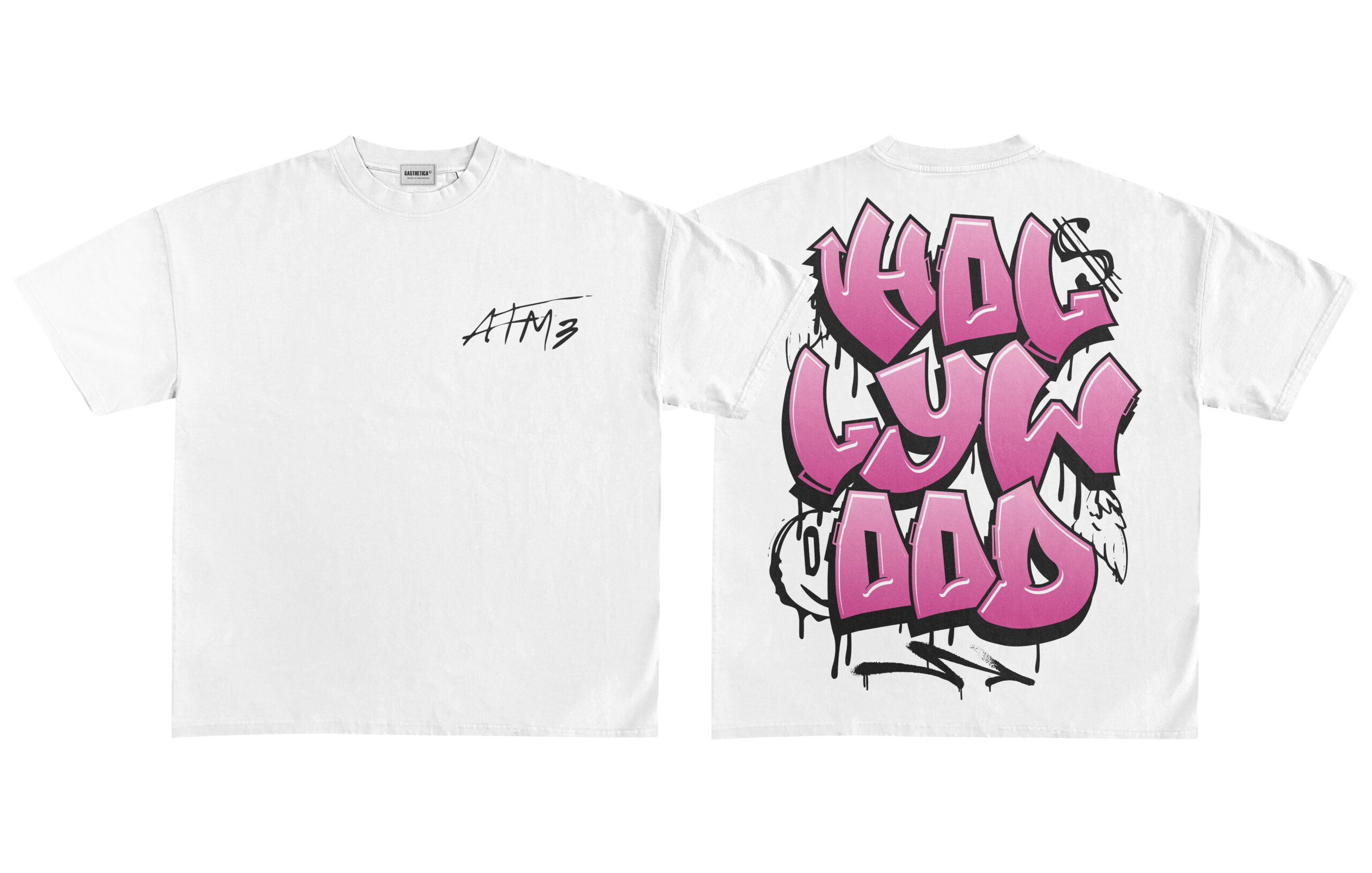 Show your support for Andrew Marsh while rocking bold street art style with the ATM3 Hollywood Graffiti Tee. The front features a clean ATM3 signature, while the back makes a statement with vibrant pink “HOLLYWOOD” graffiti lettering. This shirt is crafted from soft, breathable cotton blend fabric, this tee blends everyday comfort with standout urban edge—perfect for casual wear or turning heads on the streets.